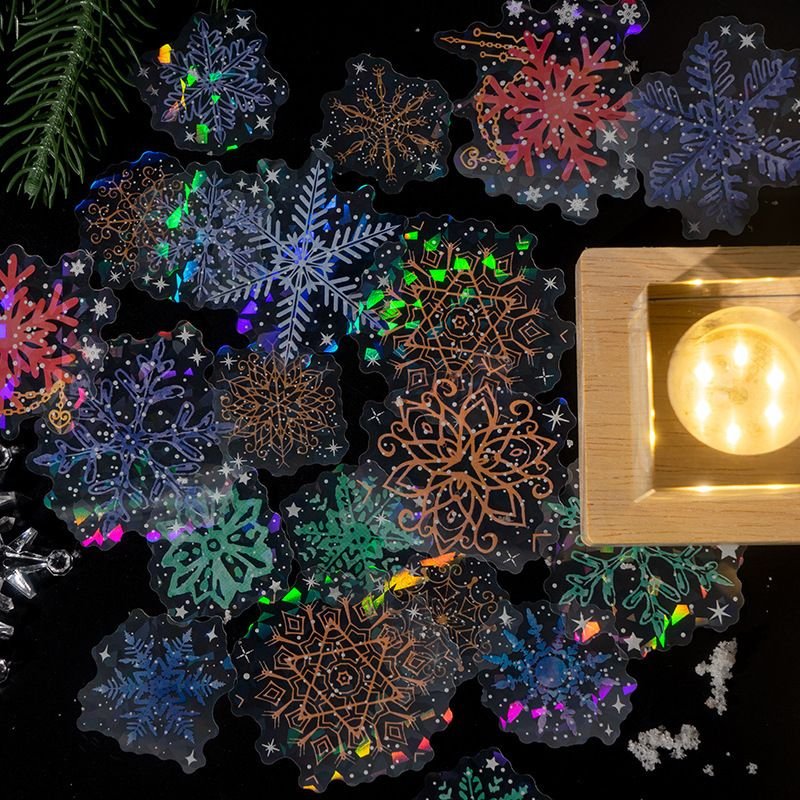 Fashion Wind Flower Snow Night Series Various Snowflake Pocket Material Stickers quantity