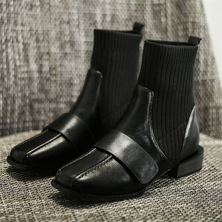 Size:4.5-12 Women Fashion Solid Color Patchwork Square Heel Ankle Boots quantity