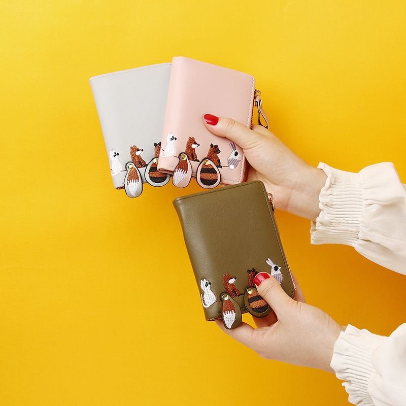 Women Fashion Cute Cartoon Animal Embroidered Folding Mini Wallet